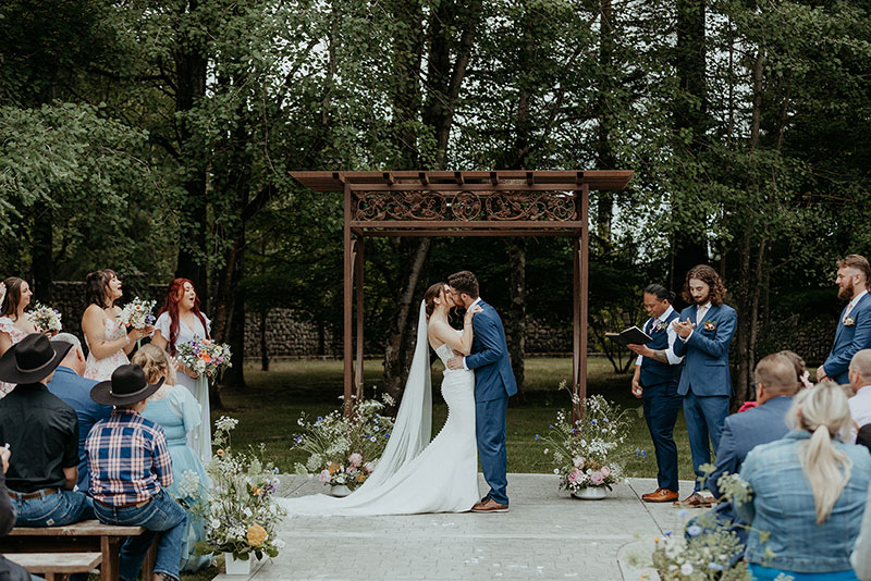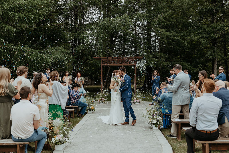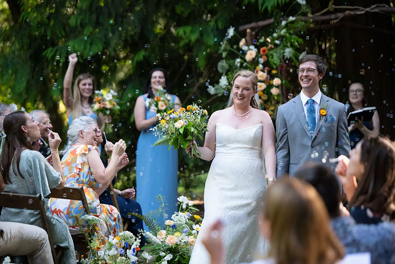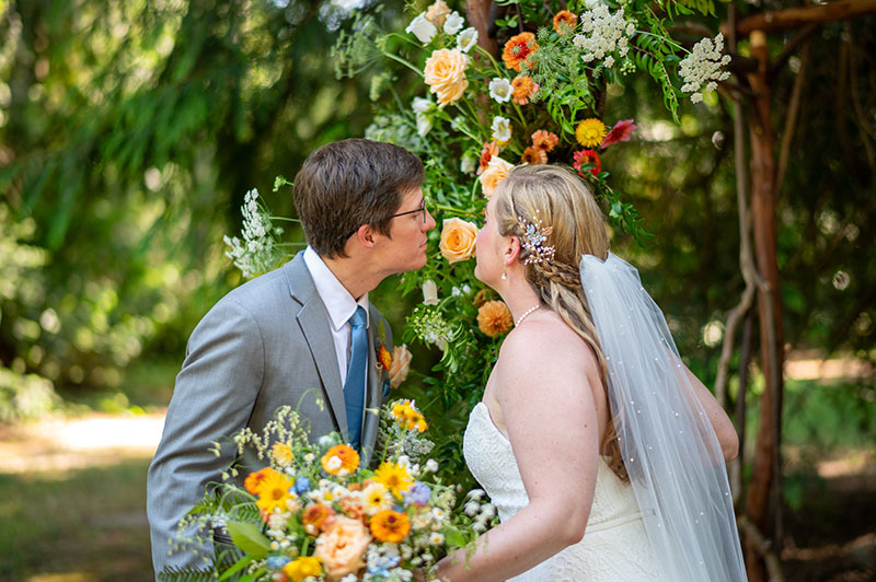 Islandwood wedding with a vibrant, colorful palette